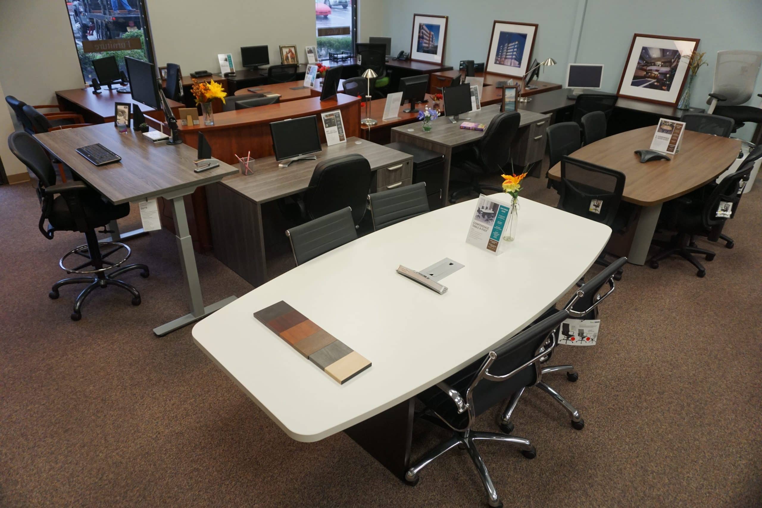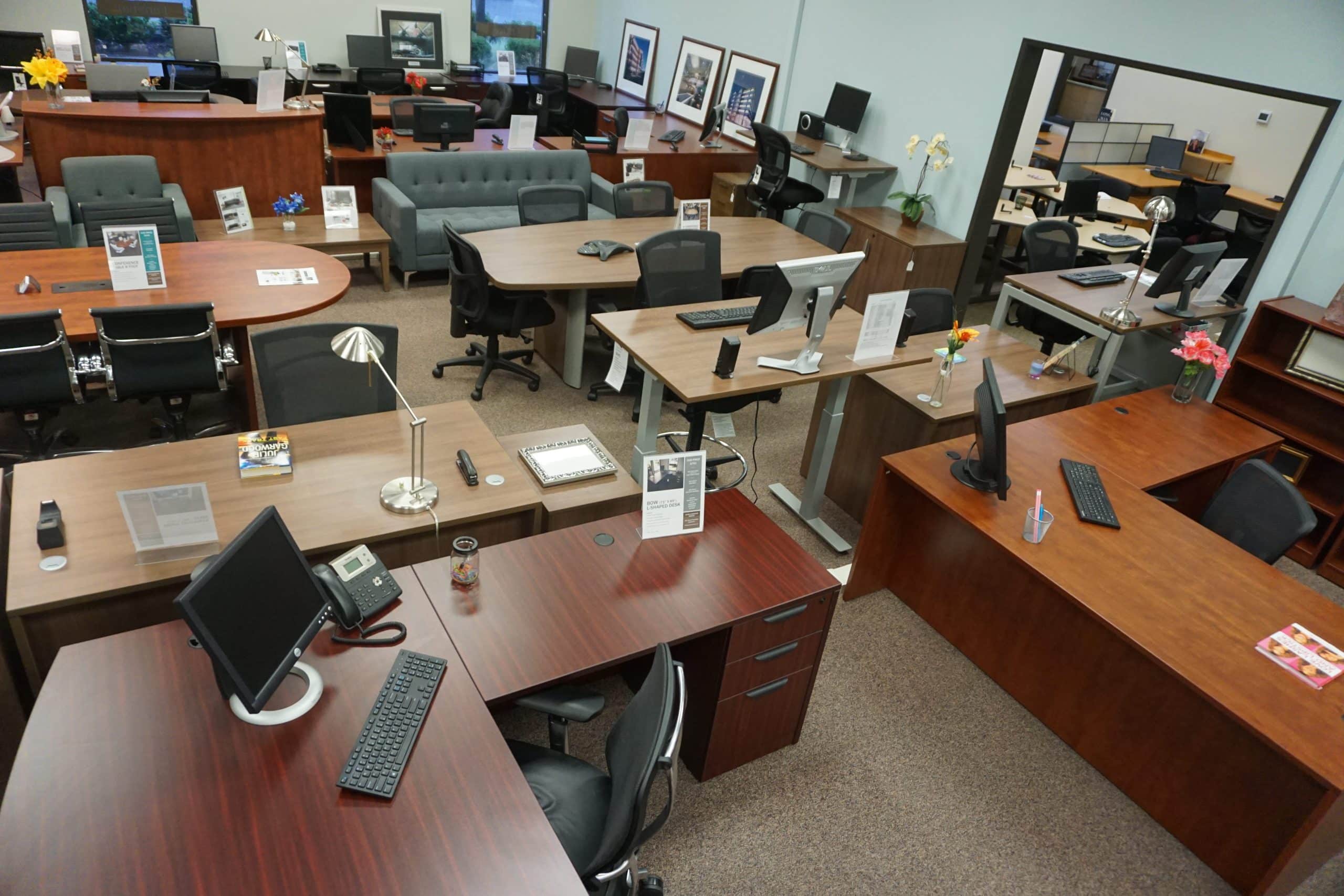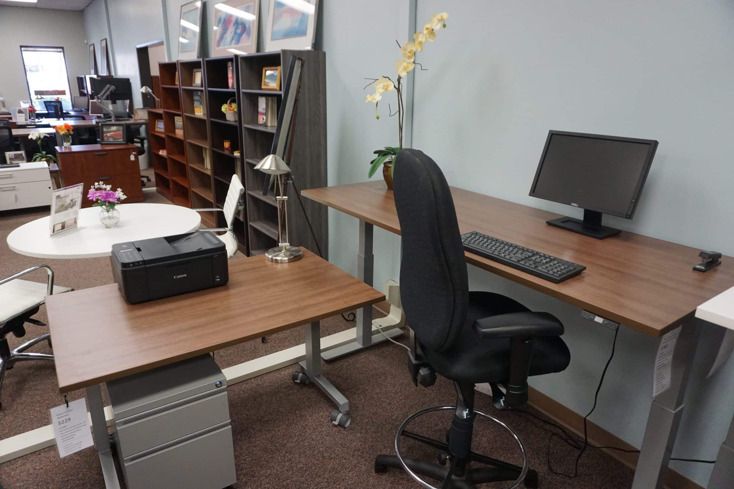 In Our Showroom You’ll Find A Large Selection Of Traditional Desks, Sit Stand & Adjustable Height Desks And Related Office Furniture. Our Showroom Displays Multiple Collections Allowing You To View And Test Our Products. Visit Our Office Furniture Showroom Featuring New & Used Options.